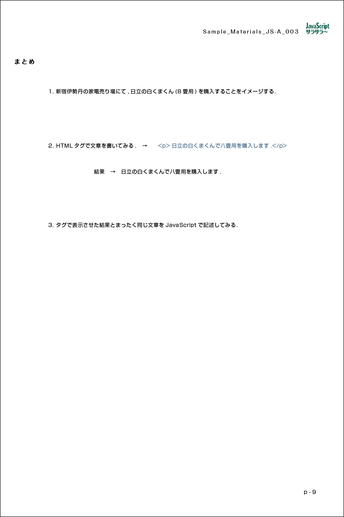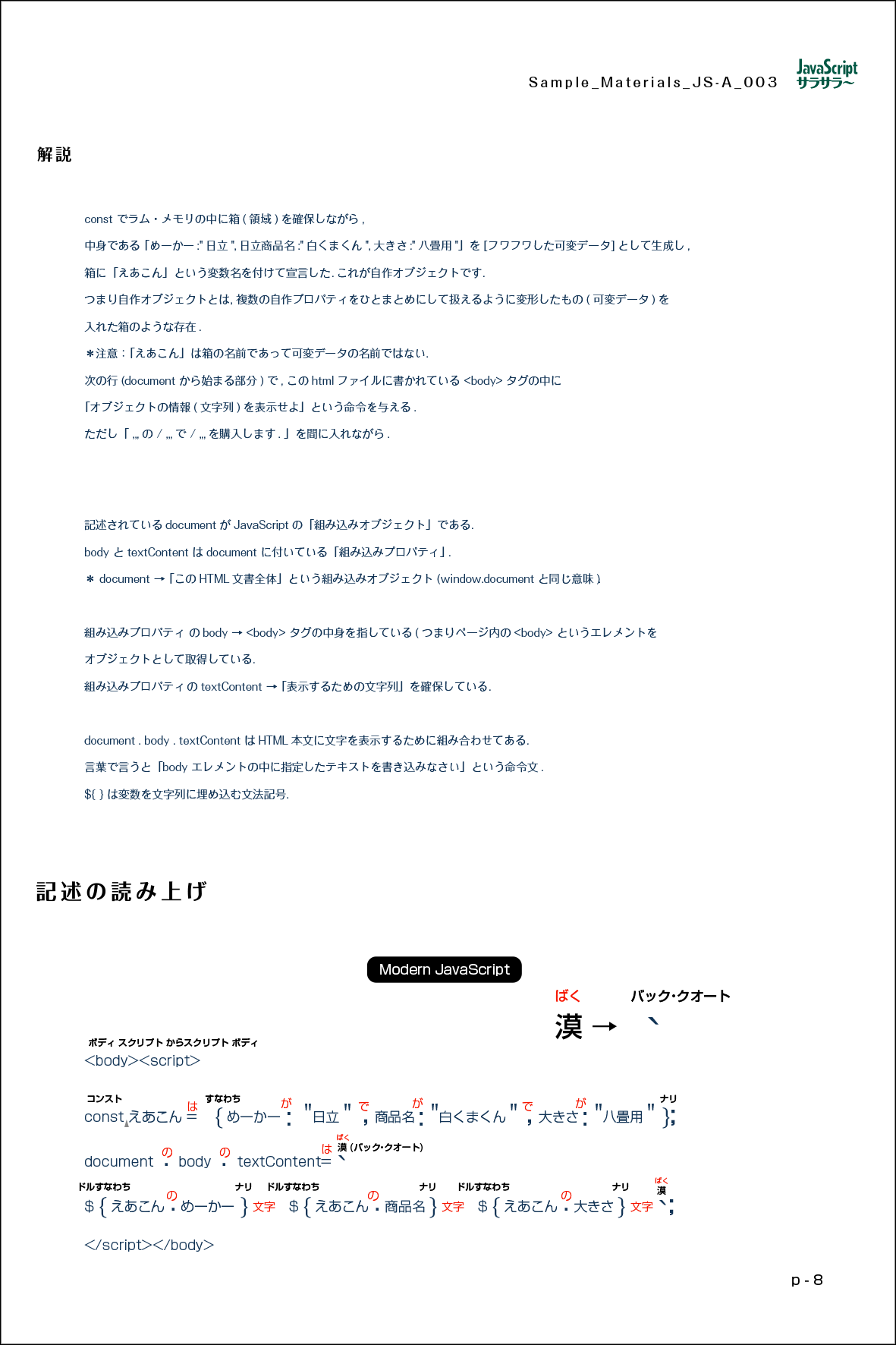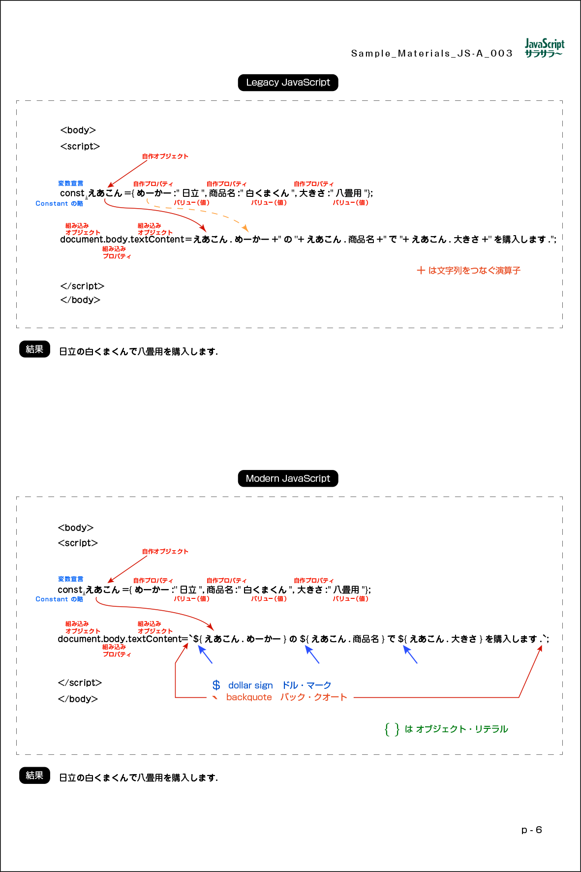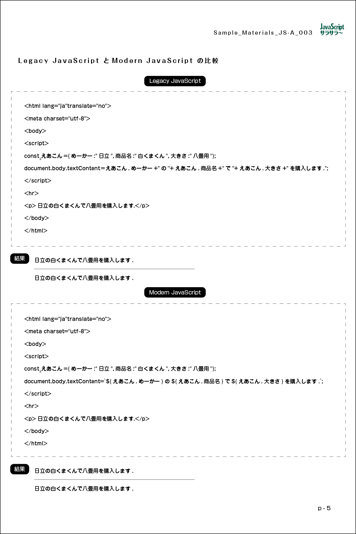 ↑ Modern JavaScript 記述と結果 ▼ PDF Download ▼ A4 (9ページ) プリント・アウトをお願いします.